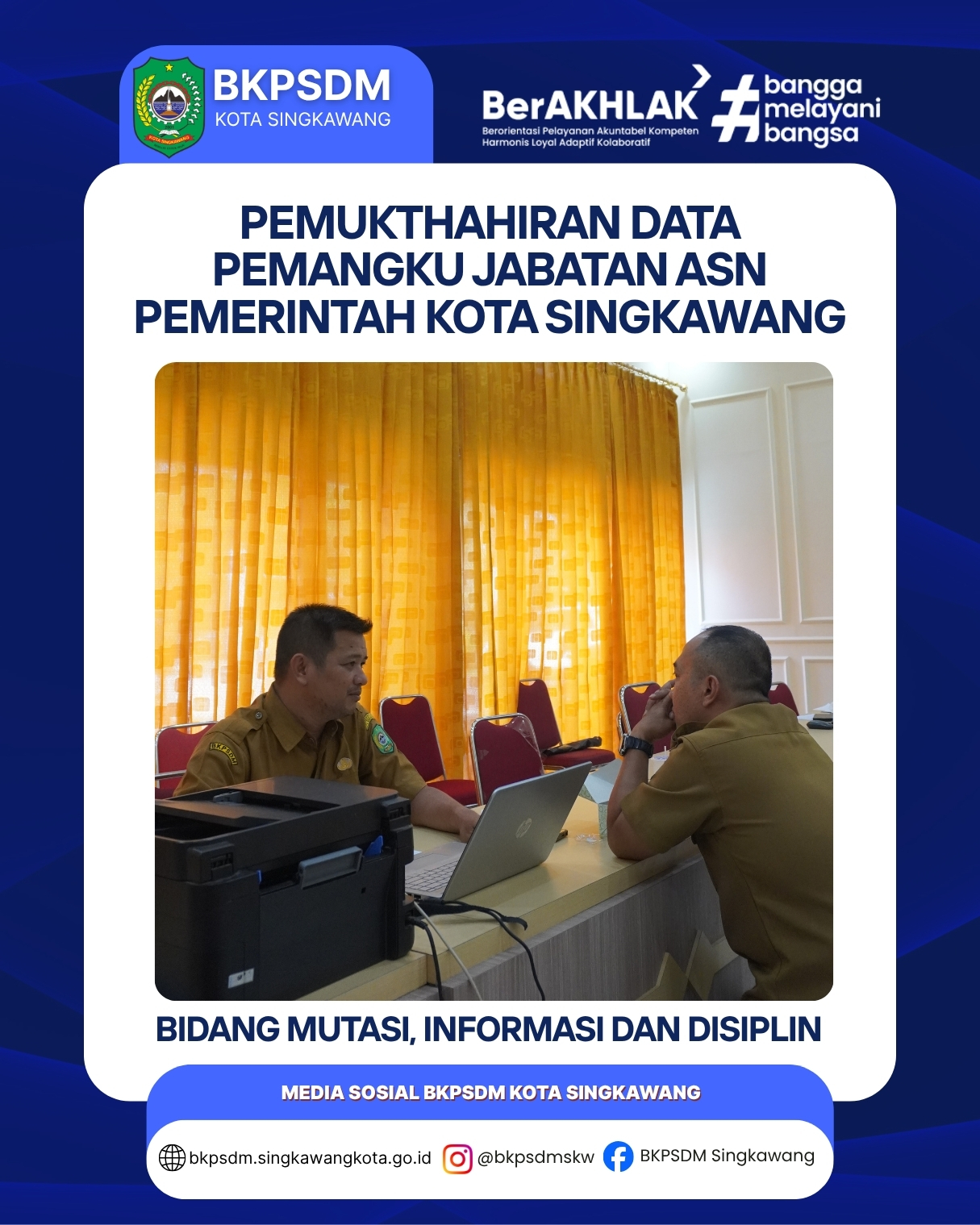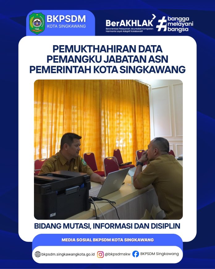 Berita Pemuktahiran Data Pemangku Jabatan ASN Pemerintah Kota Singkawang. Penulis BKPSDM - 27 April 2026 0 2 FacebookTwitterWhatsAppTelegram