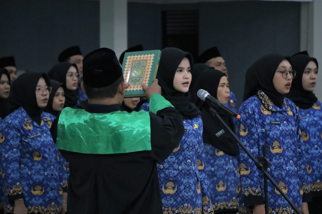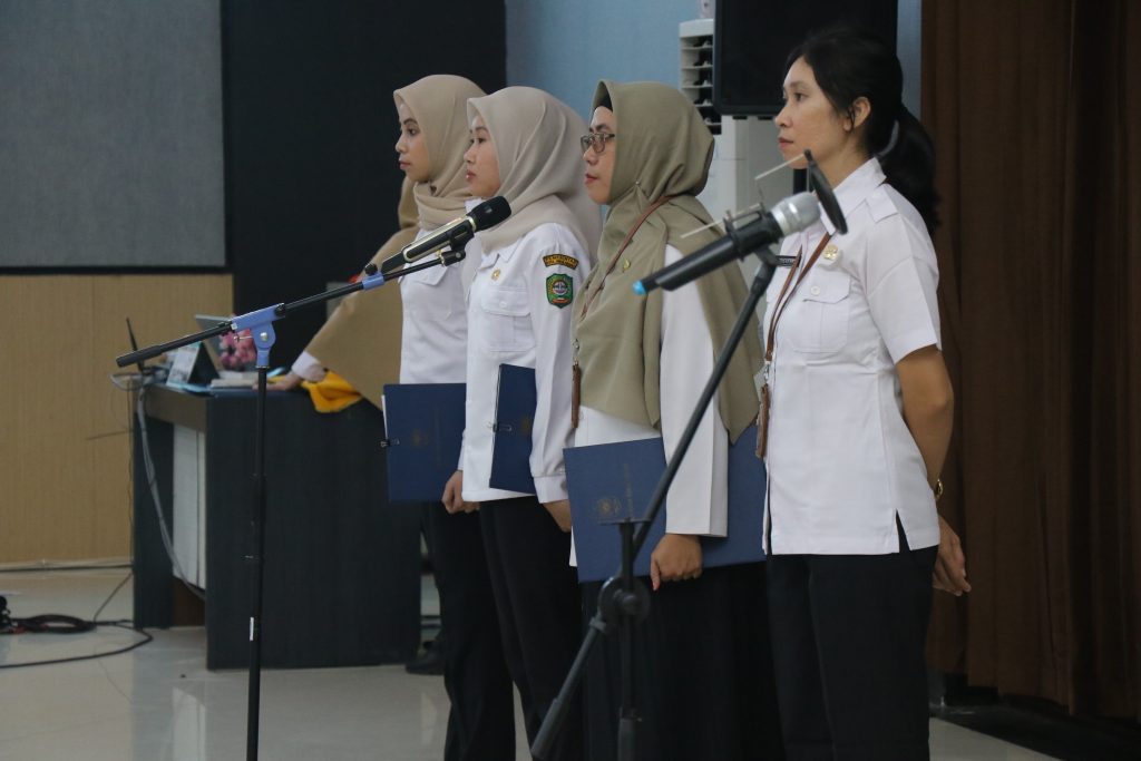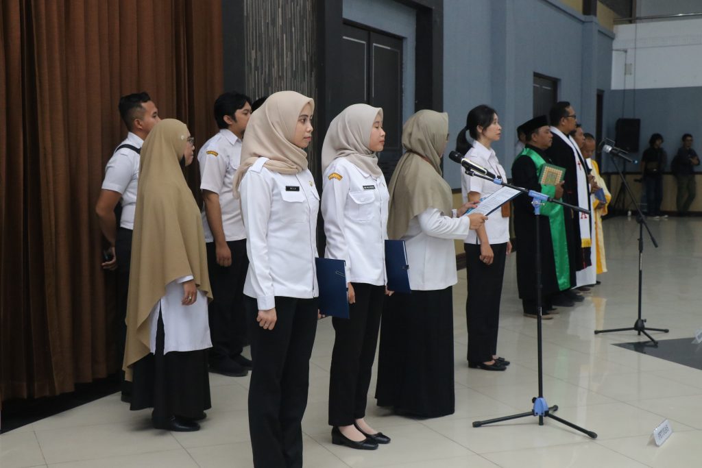 Acara dilanjutkan dengan pengambilan sumpah/janji PNS yang dipandu oleh rohaniwan sesuai agama masing-masing, dan diakhiri dengan pelantikan dalam jabatan fungsional bagi para ASN yang telah memenuhi syarat.
