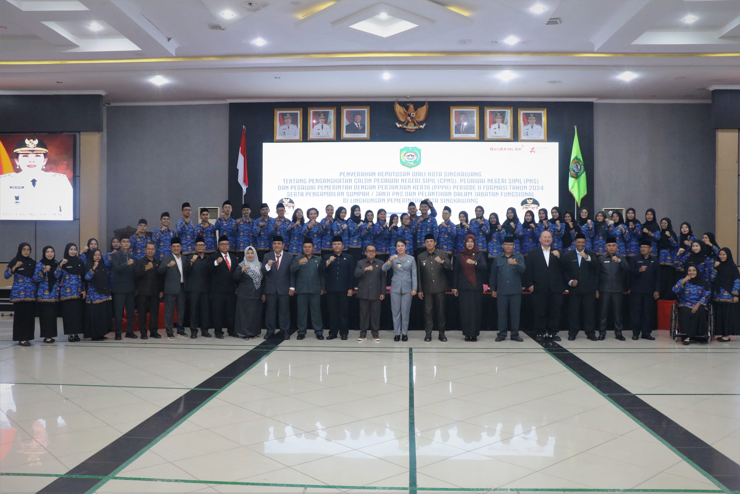 BKPSDM Kota Singkawang melaksanakan kegiatan Penyerahan Keputusan Wali Kota Singkawang tentang Pengangkatan Calon Pegawai Negeri Sipil (CPNS), Pegawai Negeri Sipil (PNS), dan Pegawai Pemerintah dengan Perjanjian Kerja (PPPK) Periode II Formasi Tahun 2024 serta Pengambilan Sumpah/Janji PNS dan Pelantikan dalam Jabatan Fungsional, bertempat di Balairung Kantor Wali Kota Singkawang pada Rabu, 1 Oktober 2025.