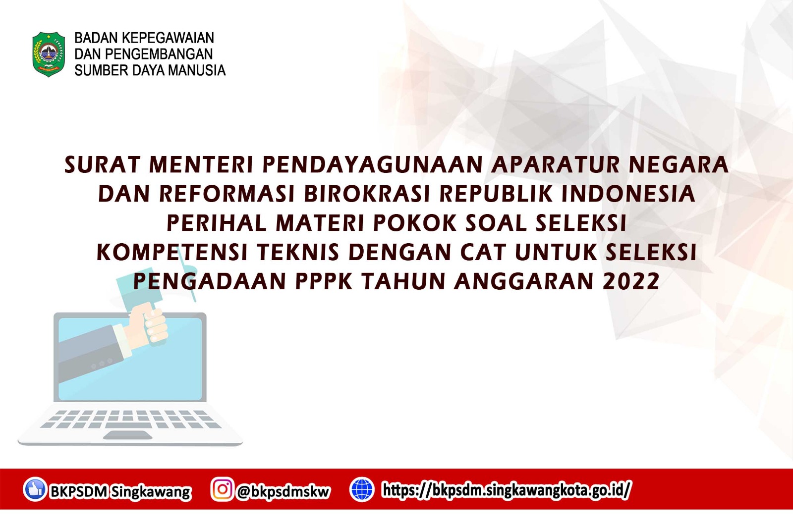 Surat Menteri Pendayagunaan Aparatur Sipil Negara dan Reformasi Birokrasi Nomor B/275/M.SM.01.00/2023 Tanggal 8 Februari 2023 Perihal Materi Pokok Soal Seleksi Kompetensi Teknis dengan CAT untuk Seleksi Pengadaan PPPK Tahun Anggaran 2022.